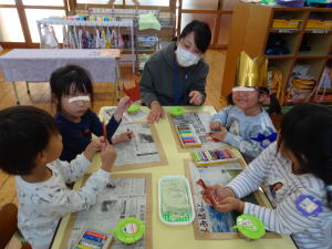 来年の干支「馬」のカレンダーを作ったりと各クラスで思い思いの制作を楽しんでいました。