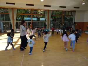 年少と年長が合同で遊戯室でダンスなどをして楽しんだクラスもありました。