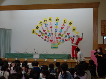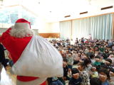 ステージから現れました。これにはみんなびっくりでした。サンタクロースは瞬間移動ができるのです!