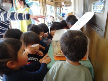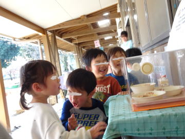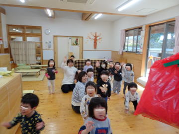 まずサンタはうさぎ組にプレゼントを持って来てくれました。