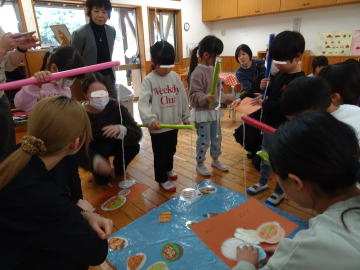 年長さんにクイズやゲームをしながら食や栄養に関して勉強させてくれました。