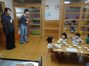 生活科学部栄養科学科の3年生が来園して、給食の様子を見学したり…