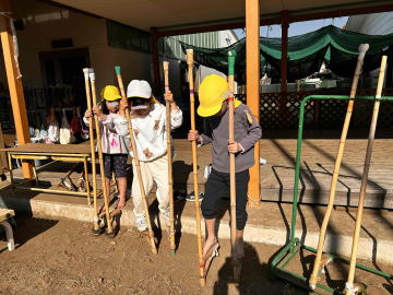 こちらでは竹馬にチャレンジ中でした。「一歩進んだよ。」「生活発表会で発表しようかな。」と練習が楽しいようでした。