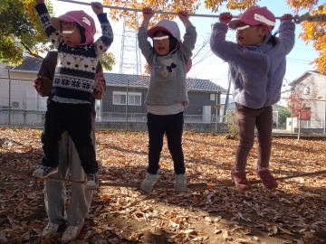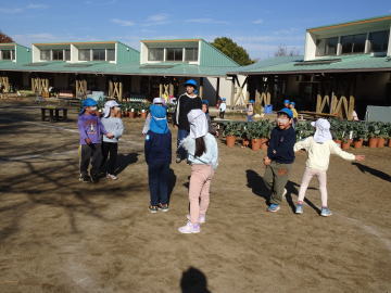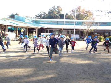 実はみんなで「けいどろ」をしていたのです。円の中が牢屋です。これまで、鬼ごっこが好きな園児が「氷おに」や「増えおに」をしてはいたのですが、クラスみんなでそろってするのは初めてでした。「けいどろ」のルールをお部屋で確認しての実践でした。鬼ごっこの面白さを感じたことでしょう。