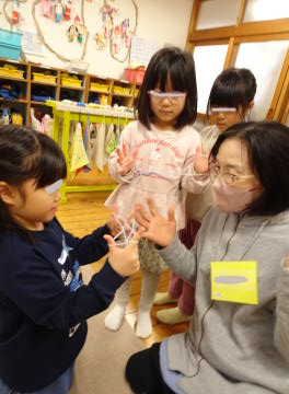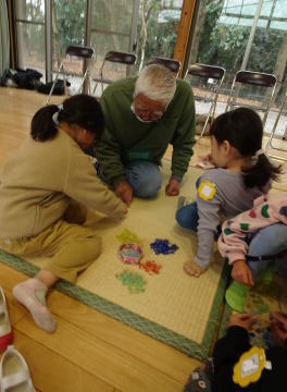 園児に教えるだけでなく、園児から教わる場面もありそれはそれで微笑ましい景色でした。