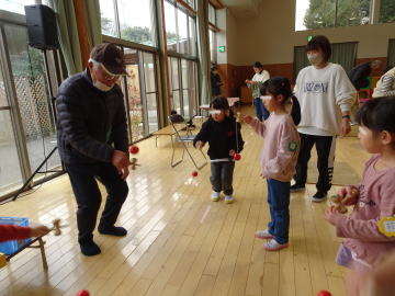 コマ回しは特に難しくて、すぐにはできない園児が多いのですが・・・