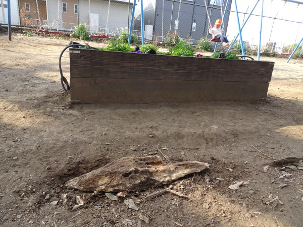 1月19日(月) 年長さんとクワガタを探しに行きました。看板の裏などを見ましたが真冬なのでさすがにいません。私は年長さんと別れて戻ったのですがその後「いたよ。」と見せに来てくれました。