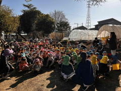 火災避難訓練がありました。今回の避難場所は畑の横でした。