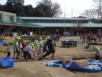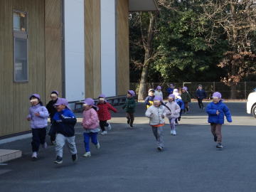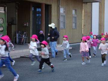 「たぬきの森」を走る園児たちもいました。どこへ行くのでしょう?