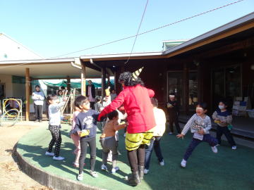 ひよこ組(0歳児)さんには、鬼が頭をなでていました。