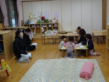 主に年長、年少、2歳児(うさぎ、ぱんだ)を中心に参観されました。