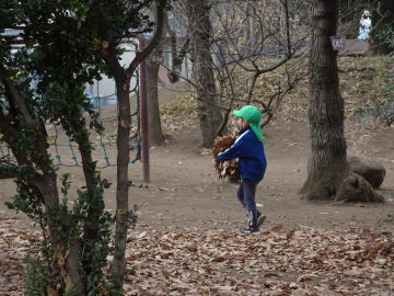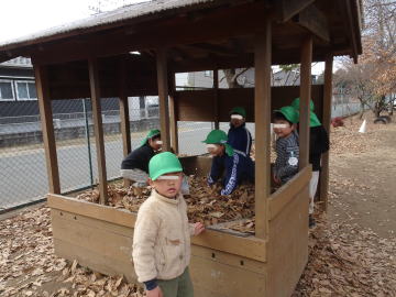 年長さんが落ち葉を集めて敷きつめて遊んでいたところに年下の園児が中に入ってきました。ですが追い払うわけでもなく一緒に遊んでいたそうです。その姿に感銘を受けた方もおられたそうです。
