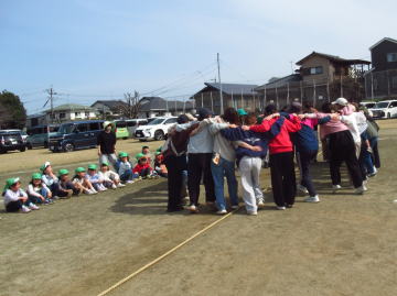 保護者の方が円陣を組んでいます。