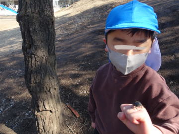 虫かごの中で冬を越したクワガタを年長さんが放そうとしていました。これまで育ててきたから「もう少し育ててみたら?」と声をかけました。すると「もうすぐ僕たちは小学校に行って育てられないから逃がすんだよ。」と答えました。ウルっときました。