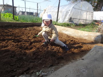 うさぎ組さんは西側の赤土場まで遊びに来れるようになりました。活動範囲が広くなりましたねえ。