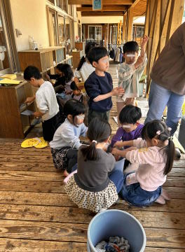 お世話になったお部屋を大掃除する年長さんです。