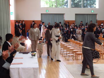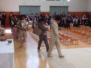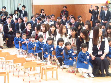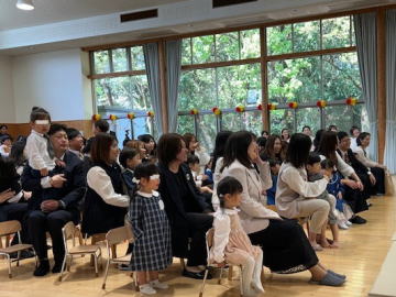 年少さんはおうちの人と一緒に入場して椅子に座りました。