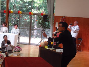 たくさんの人に見つめられてちょっと緊張ぎみのうさぎ組(2歳児)さんです。