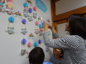 「上手にお顔がかけましたね。さっそく気球に乗りましょう。」
