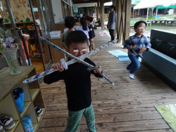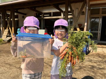 やっと晴れて、外の活動ができました。年長さんは自分の鉢を年長のお部屋の前に移動しました。
