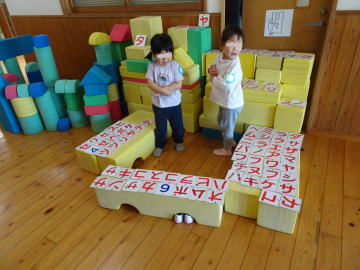回ってみると…文字のお部屋ができていました。なぜかカタカナでした。ひらがなが黒色だったので明るくしたかったのでしょうか。