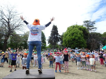 今年度初めてのなかよし集会でした。園長からのダンゴムシについての話の後、はとぽっぽ体操をみんなでしました。