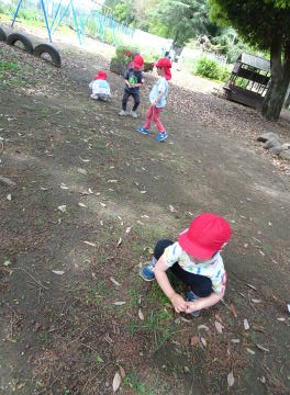 終ってからは学級の時間でした。年中さんが石ころ拾いをしていました。10個拾ったらおしまいでした。