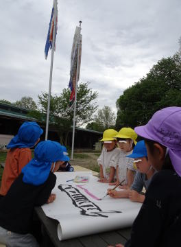 こいのぼりの泳ぐ様子を年長さんが描いていました。