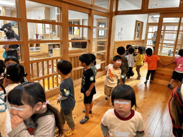 年中さんが園内巡りで保育棟を見学しました。保育棟に初めて入った園児もいたことでしょう。