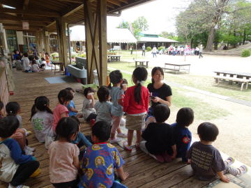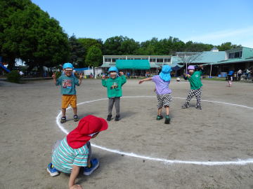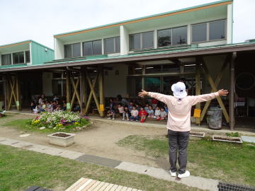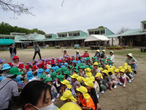 年中さん・年長さんに話しことを改めてお話ししました。一列に並んで避難すること、先生たちが守ってあげるから安心して避難することなどを伝えました。