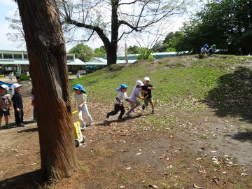 その横では、築山の回りをコースにして、リレー遊びをしていました。