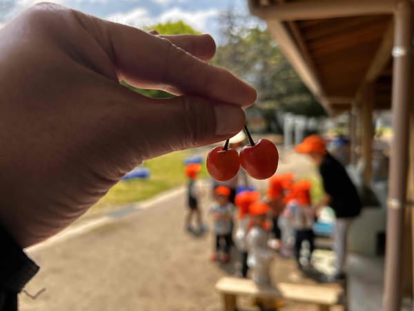 とってきたのはサクランボです。ちょっと酸っぱいですが、新鮮でおいしい!
