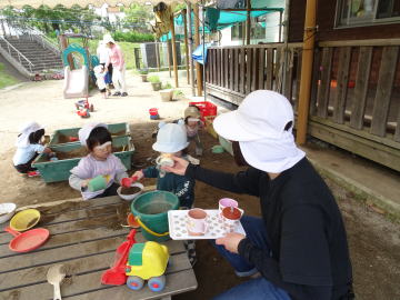 年中さんが収穫した物を嬉しそうに見せてくれました。