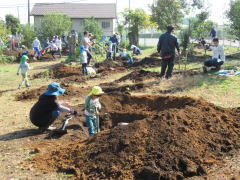 これも尚絅名物?年長さんの穴掘り。瞬く間にあちらこちらに大きな穴ができました。