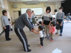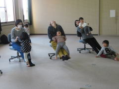 幼児教育学科の柿原先生の「親と子のふれあい運動あそび」では、お母さんたちはすべり台に変身!!みんないい表情です!