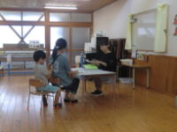 合志中学校から「職場体験学習」で来ていた3人は、みな、本園の卒園生です。「子どもたちといろいろなことができて楽しかった」「もっと子どもたちと一緒に過ごしたかった」「三日間は早かった」「さみしい感じ」という感想を述べてくれました。将来、教育・保育の道を目指すきっかけになるといいなあと思いました。
