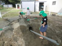 砂場では長~いトンネルが完成間近です。さすが年長さん、話し合いながら工事を進めています。