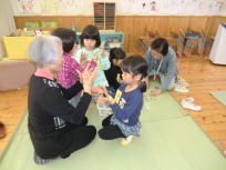 年中児たちは、祖父母のみなさまといろいろな遊びを楽しみました。