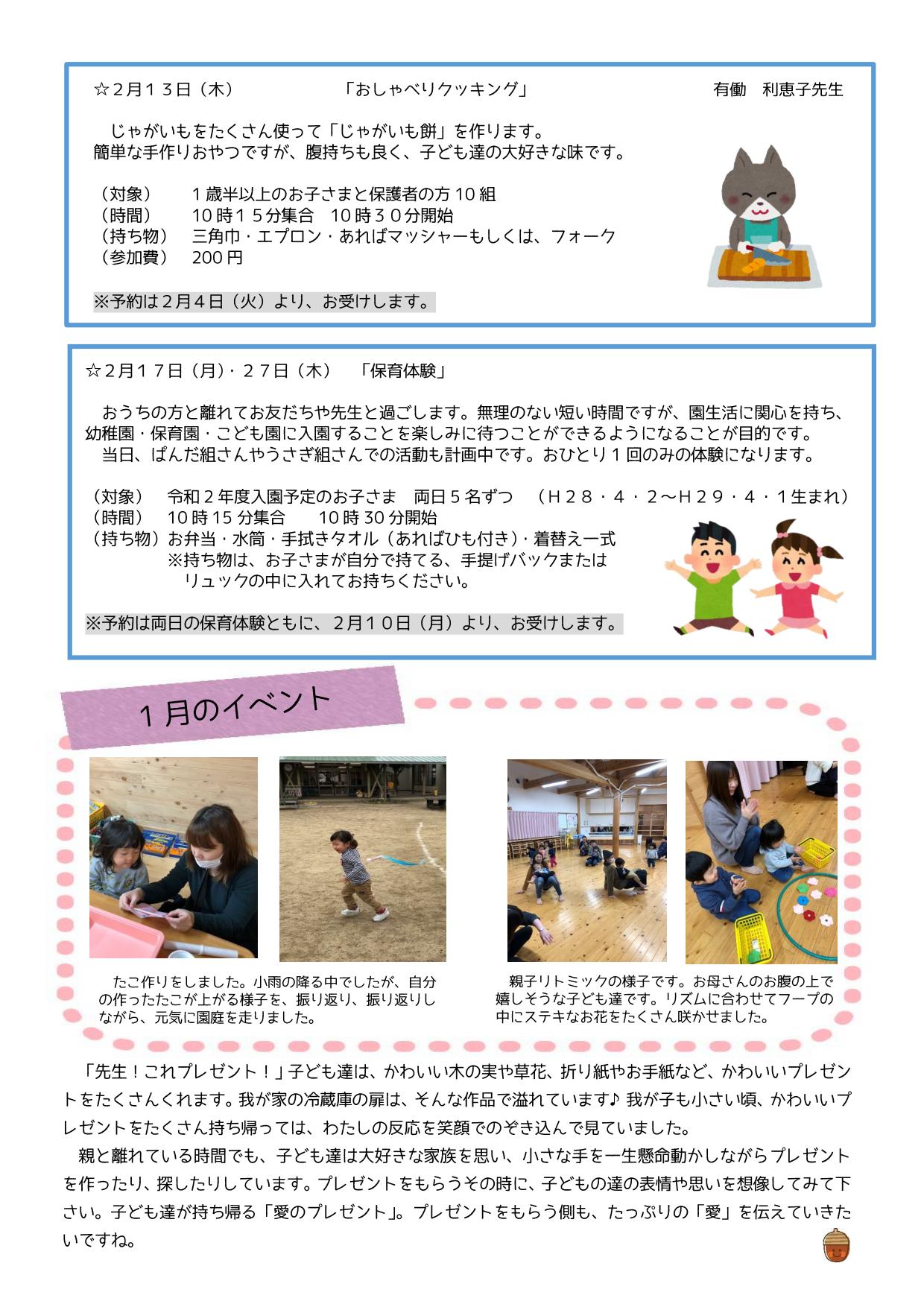 2月は、保育体験もありますので、興味のある方は、ぜひ、ご参加下さい。