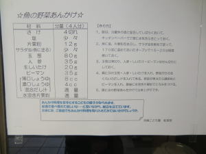 魚の野菜あんかけのレシピです。魚は良質のたんぱく源です。魚からとる脂肪は良質です。