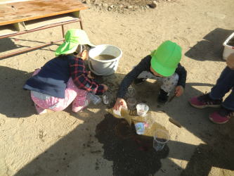 こちらでも。水を入れたり、砂を混ぜたりと、いろいろなことを試しているようです。
