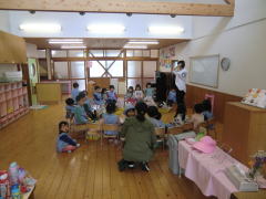 年少組。朝から泣き声も聞こえてきますが、しだいに園生活に慣れてきています。