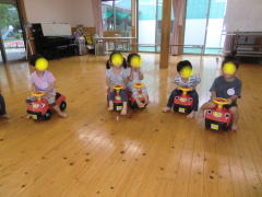 雨の日のうさぎ組さん達です。ピアノに合わせてゴロゴロ、ゴロゴロ!