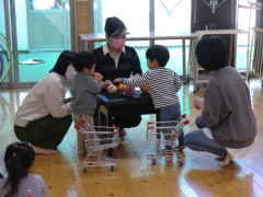 音楽に合わせてフルーツをお買い物。ダイナミックな動きを楽しんでいました。