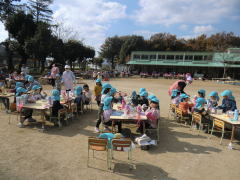 園児達は、餅を2個づつ、砂糖じょうゆに付けていただきました。