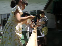 竹は、保育者のご両親からいただきました。組み立ては運転手の先生方にしていただきました。ありがとうございました。