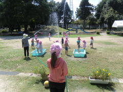 保育棟のみんなも水遊び。まあだまだ、水遊びはしますよ~!