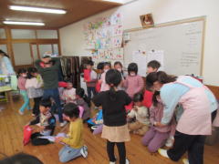 年中組さんの中には「サンタさんありがとう!」ってお空に向かって叫んでいる年中組の園児もいましたよ。