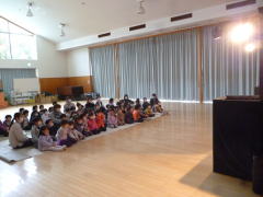 年少組は「赤ずきんちゃん」、年中・年長組は「うさぎとカメ」でした。オリジナルを創作してあり、園児をひきつけ楽しむ中にも「教え」がある劇に、園児達は夢中でした。