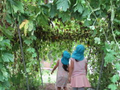 葉っぱの形や花の色を覚えながら、草や木を育てて労作を楽しむ幼児。